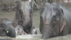 云南野象家族频繁现身 河中畅游嬉戏