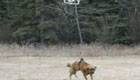 男子用无人机遛狗