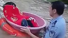 男子发现鸭子被冻湖面 跳湖破冰救援