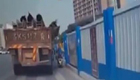 实拍骑车男突遭货物掩埋