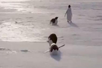 男子发现鸭子被冻湖面 跳湖破冰救援