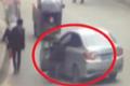 司机肇事后竟开门伸脚刹车