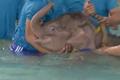 泰国小象接受水疗治伤腿