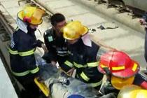 老人摔入轻轨凹槽躲过列车