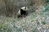实拍野生大熊猫下山喝水 奔跑在田野间