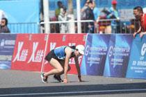 女选手冲线时刻体力不支 爬过马拉松最后2米