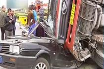 又是闯红灯惹的祸 货车“骑”上小轿车