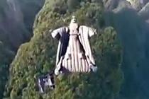 翼装飞行运动员险撞摄影师