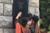 为给孩子拍照 “三代人”猛摇海棠树