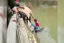 众人“搭人链”救落水老人