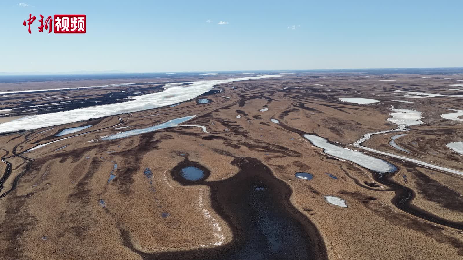 航拍青海湖:半湖清水半湖冰 高原春景入画来