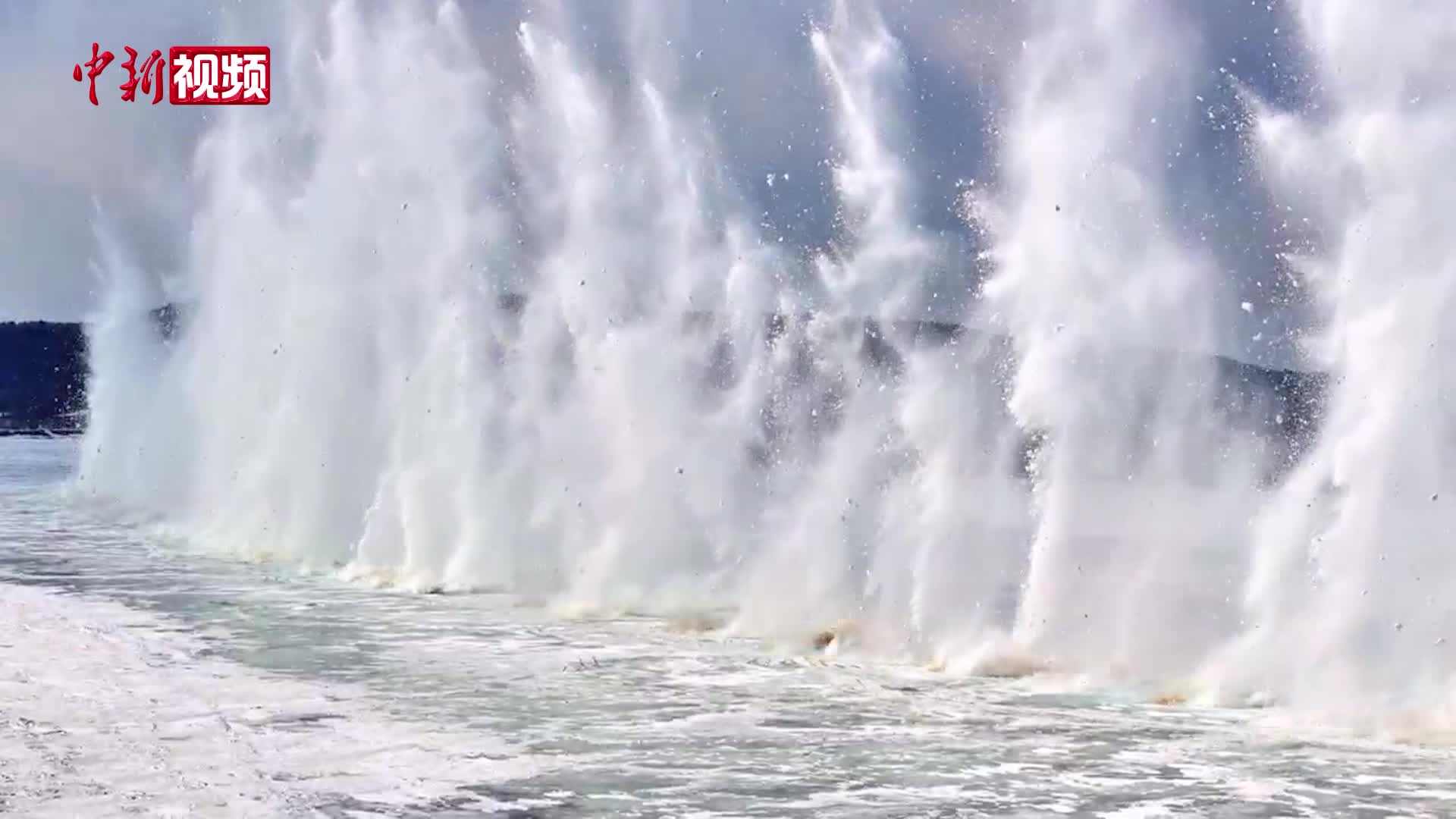 数十米高冰瀑!黑龙江呼玛段开展防凌汛爆破作业