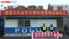 【解说】当记者来到考古现场时,准备将石兽托运的吊车和卡车早已停在现场待命,同时工人们正在拆除保护石兽的顶棚。为了运输安全,石兽被4层保护膜包裹,全身裹得像粽子一样。