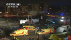 【解说】11月23日晚上9点多,青岛输油管爆燃事件现场还是一片狼藉,在长达3.5公里的青岛市黄岛输油管线爆燃沿线,被爆炸冲击波掀翻的车辆仍然躺在路边,30厘米厚的石子混凝土上面覆盖着5厘米沥青的路面,片片被鱼鳞似的揭开。虽然已是夜间,救援人员依然在紧张的忙碌,就在繁忙的现场旁亮着一盏灯,这里有一个水果摊,摊主正在微笑着给居民称水果,他也是这场灾难的亲历者。