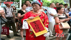 【解说】记者在其中一个考点看到,不到8点,入口的警戒线外“人头攒动”,家长们这时甘当“劳工”,为孩子们准备水、毛巾,替他们检查考试用品,在考前尽可能地为子女多创造一份舒心的气氛,缓解压力。