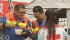 【解说】事故现场,高速公路护栏被撞断10多米长,一辆厦门牌照的旅游大巴车侧翻在离路面2米深的路基下面,挡风玻璃全碎,车身左侧变形严重。通过现场了解,多名受伤的人员已被送往医院救治,此时大巴旁边的两名受伤妇女,由于雨天路滑,一时无法成功转移到路面急救,而大巴里面靠尾部位置也有两名受伤严重的妇女在等待救援。
