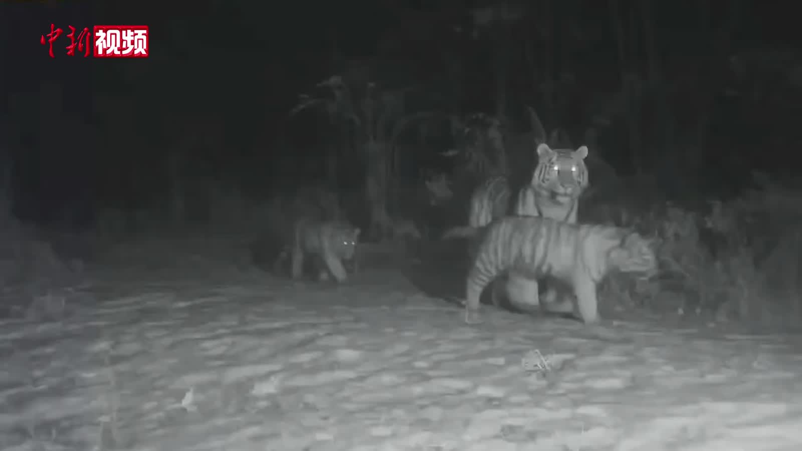 吉林珲春罕见拍到“虎妈带四娃”影像