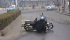 拍客:道路结冰 车主马路惊魂