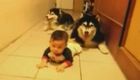 哈士奇陪婴儿爬行 台湾妈妈拍影片网络热传