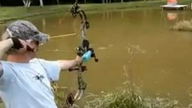 男子发现鸭子被冻湖面 跳湖破冰救援