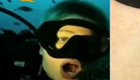 实拍男孩潜水张嘴模仿鱼类让虾刷牙