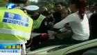 实拍:交警抓违章 女司机坐引擎盖撒泼半小时