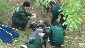 男子发现鸭子被冻湖面 跳湖破冰救援