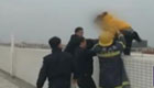 男子发现鸭子被冻湖面 跳湖破冰救援