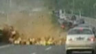 实拍:货车超载超速侧翻高速 货物倾泻殃及无辜