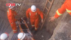 新疆一醉汉凌晨跌落深坑 消防架梯成功营救