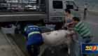 实拍:4头猪被送往屠宰场路上跳车被抓回