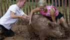 美国“人猪摔跤”大赛遭抗议 泥浆中与猪互搏