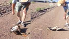 实拍老鹰被蛇缠身奄奄一息 遇路人救助