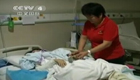 环卫大妈闯红灯被撞飞 刹车把手插大腿