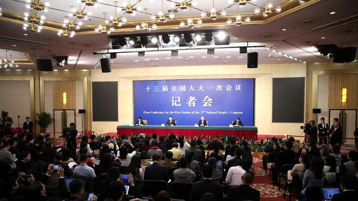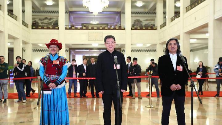 3月11日下午3时,十三届全国人民代表大会一次会议在人民大会堂举行第三次全体会议。会议开始前,在人民大会堂中央大厅举行“代表通道”采访活动。