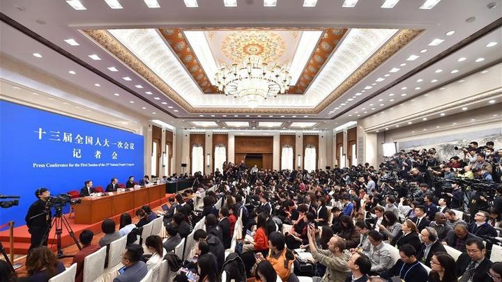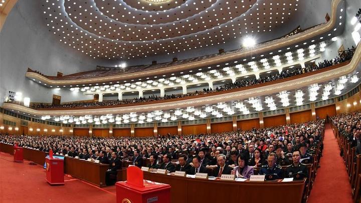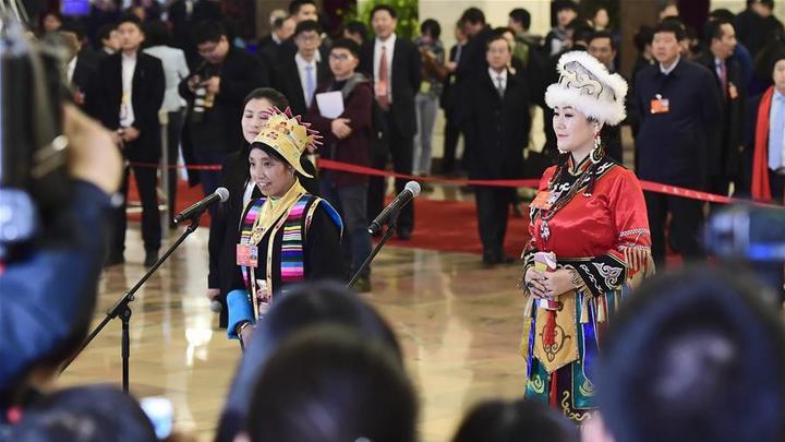 3月13日上午9时,十三届全国人民代表大会一次会议在人民大会堂举行第四次全体会议。会议开始前,在人民大会堂中央大厅举行“代表通道”采访活动。