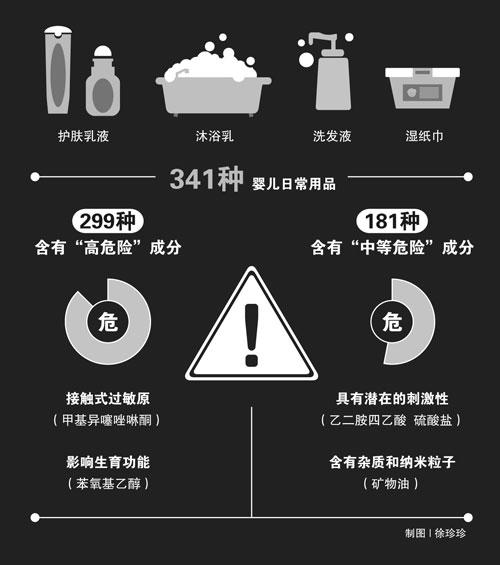 “欧洲女性共创未来”是一个由150家环保机构和妇女机构组成的国际非政府组织,分布于50个国家。该组织在2015年7月、8月对法国市场上出售的婴儿洗护用品进行了安全检测,结果发现,这些产品中绝大部分含有危险化学成分。抽样产品来自于药店、大型和中型超市以及有机产品商店,产品类型包括洗发液、护肤乳液、沐浴乳、湿纸巾等341种婴儿日常用品。根据欧盟消费者安全科学委员会(SCCS)和法国国家药品安全局(ANSM)制定的测评标准,该组织将这些婴儿洗护用品划分为“高危险”“中等危险”“低危险或不确定”3类。