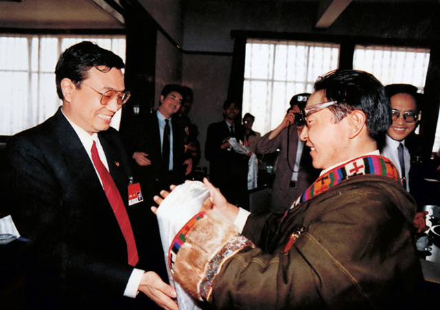 1993年5月2日,李克强到共青团第十三次全国代表大会代表驻地看望代表。新华社发