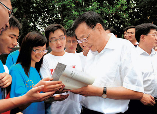 2011年7月5日,李克强在安徽考察经济社会发展情况时,与中国科技大学学生们亲切交流。新华社记者饶爱民摄