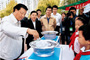2009年3月25日,刘云山在山东省潍坊市和市民亲切交谈。新华社记者朱峥摄