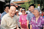 2003年6月28日,防治"非典"期间,王岐山在北海公园与北京市民共度周末。新华社发