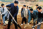 1995年12月,时任福建省委副书记、福州市委书记的习近平(前排左一)在闽侯参加闽江下游防洪堤加固工程劳动。新华社发