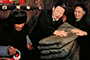 2007年1月,时任浙江省委书记的习近平(右一)在浙江省庆元县屏都镇敬老院为老人们炒菜。新华社发
