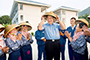 2013年4月8日至10日,中共中央总书记、国家主席、中央军委主席习近平在海南考察工作。9日下午,习近平在亚龙湾兰德玫瑰风情产业园高兴地戴上黎族群众递上的斗笠。新华社记者李学仁摄