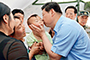 2013年7月11日至12日,中共中央总书记、国家主席、中央军委主席习近平在河北省调研指导党的群众路线教育实践活动。这是习近平在平山县西柏坡革命旧址同当地群众握手交谈。新华社记者李涛摄