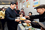 2013年2月4日,中共中央总书记、中央军委主席习近平在甘肃兰州考察时为七旬老人端饭。新华社记者兰红光摄