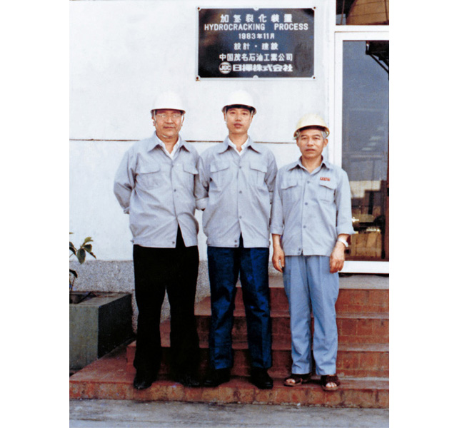 1984年3月9日,张高丽(中)在中国石化总公司茂名石油工业公司炼油厂加氢裂化装置调研。新华社发