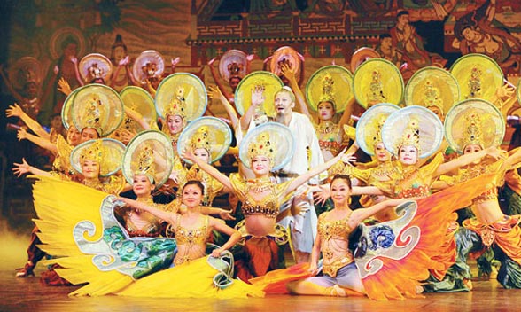《丝路花雨》是以举世闻名的丝绸之路和敦煌壁画为素材创作的大型民族舞剧。它歌颂了画工神笔张和歌伎英娘的光辉艺术形象,描写了他们的悲欢离合以及与波斯商人伊努斯之间的纯洁友谊。《丝路花雨》自1979年首演至今,共演出1400余场,观众达300多万人次,2004年10月被上海大世界基尼斯总部认定为“中国舞剧之最”。多年来,《丝路花雨》先后访问过朝鲜、法国、意大利、日本、泰国、前苏联、西班牙、土耳其及港澳台等20多个国家和地区,演出深受好评,被誉为“中国民族舞剧的典范”。