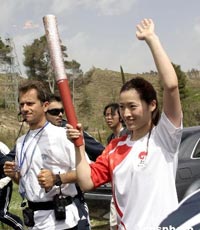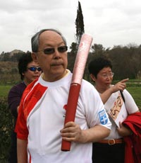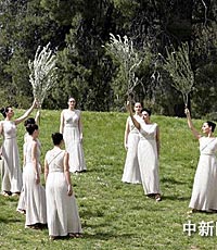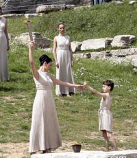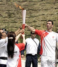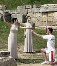 当地时间二十四日上午十一时四十八分,北京奥运圣火在古奥林匹克遗址点燃。