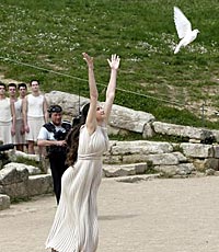 在圣火采集仪式开始前,慕名而来的人们已经率先收获两个惊喜:一是被预报可能出现阴雨天气的奥林匹亚,整个上午都是艳阳高照;二是希腊总统帕普利亚斯亲临现场,而在此之前,希腊总统只在二00四年出席过在本国举行的雅典奥运会圣火采集仪式。